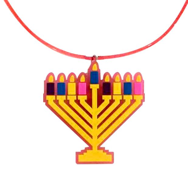 Bring a touch of light and fun to your Chanukah celebrations with this eye-catching menorah necklace!